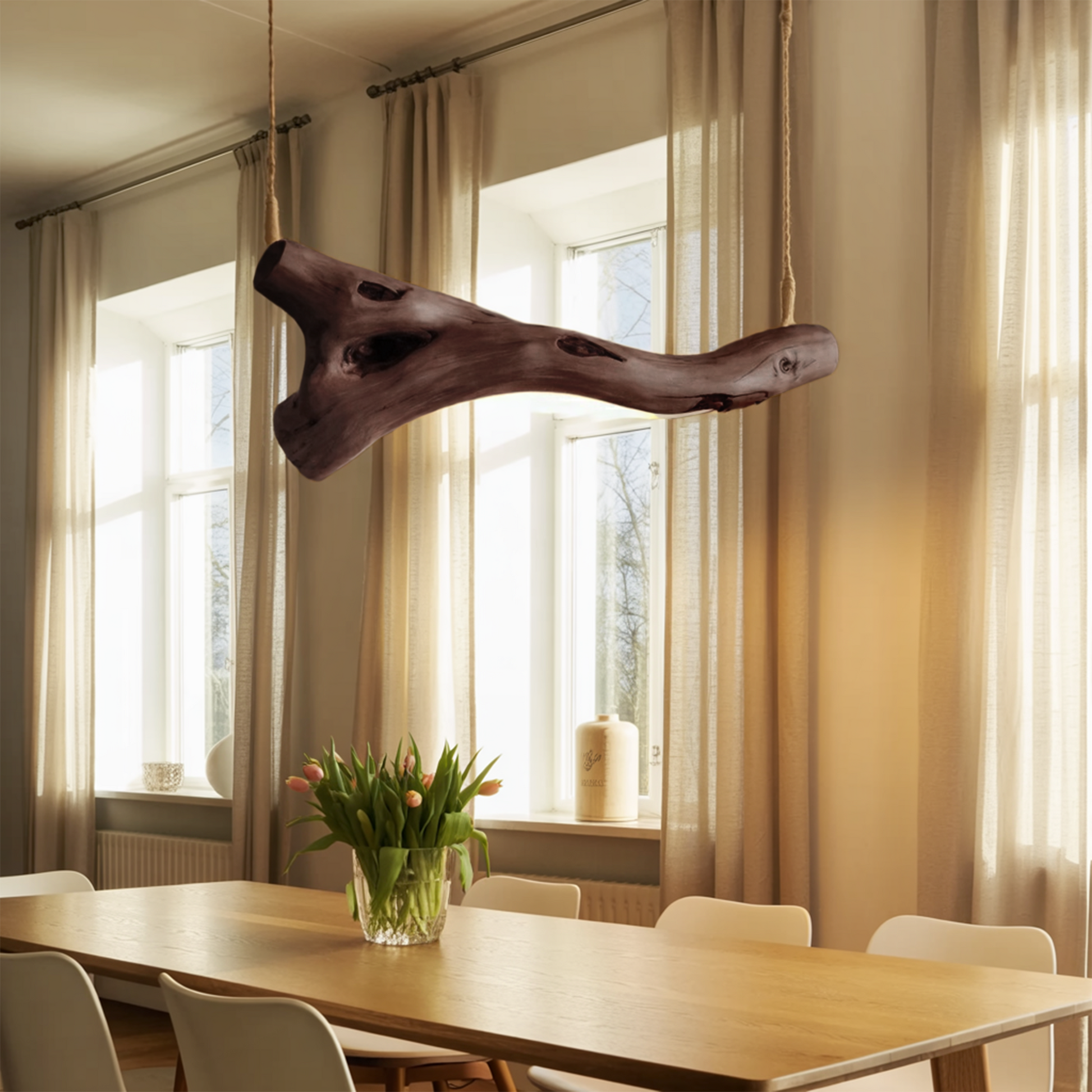 Bring Nature’s Elegance Into Your Home with the Modern Rustic Pendant Light With Tree Branch Design For Living Room Or Dining, a captivating lighting piece that blends sculptural artistry with gentle illumination. Crafted to enrich your interior with warmth, simplicity, and organic charm, it creates a soothing ambiance while adding a striking focal point to your space.